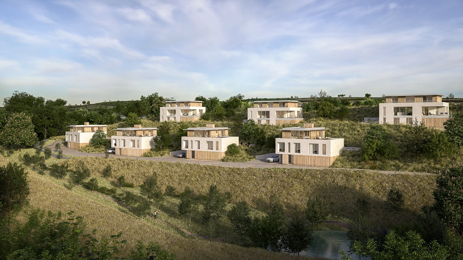 The site is situated on a former quarry and has applications dating back to 1989 for residential development. The site had a number of approved schemes, with a number of different agents involved but was in need of a fresh approach. The client purchased the site with 3 of the 12 houses already built, however felt that the designs could be improved. We were therefore tasked to improve the currently approved scheme, reimagining both the internal layouts as well as appearances to maximise the site and its value.