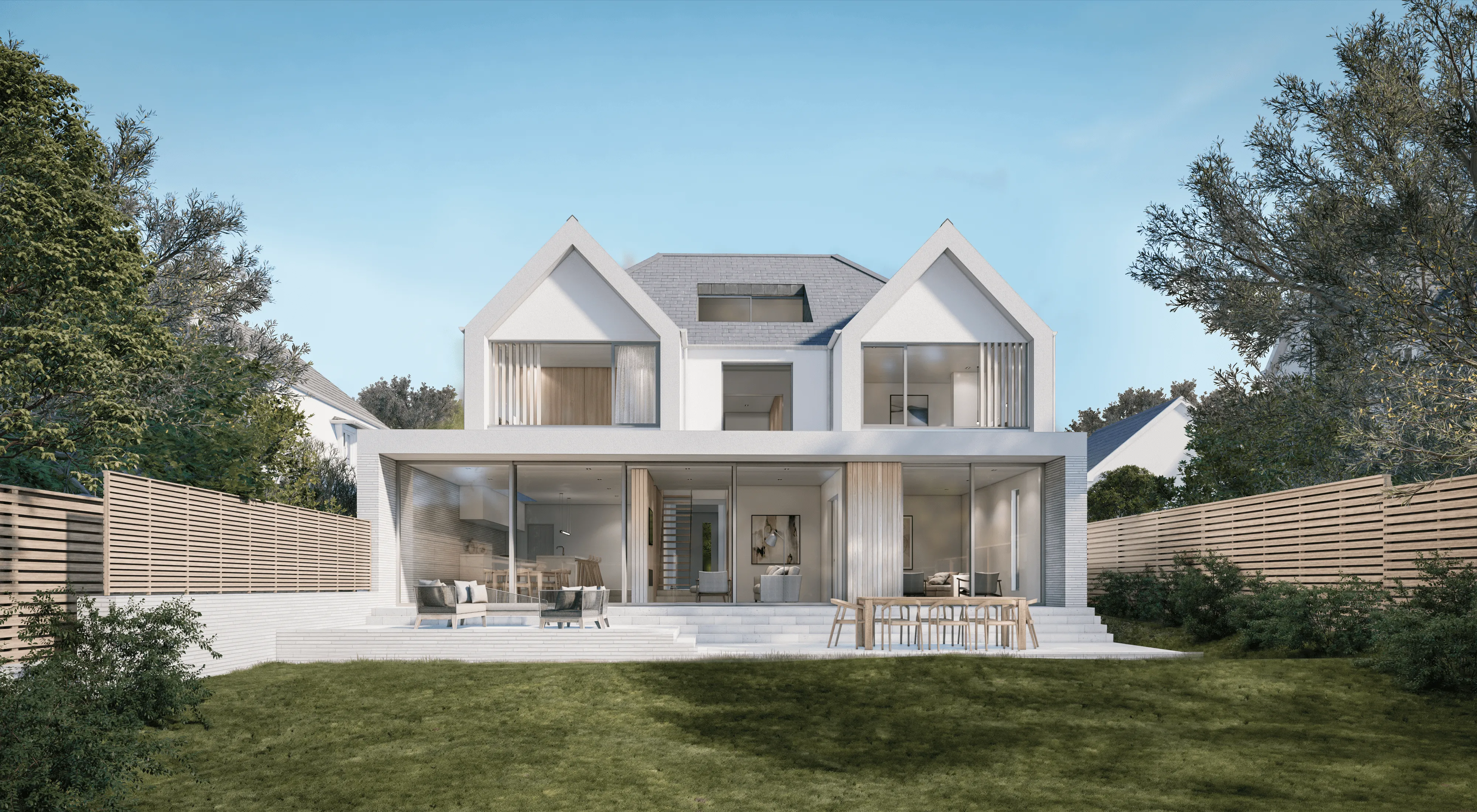 Our task was to strip back the building and consider it holistically, amalgamating all of the desired uses into one considered piece of design, omitting the ill-considered volumes as well as rationalising the roof forms. The outcome was to be a home which suits the somewhat opulent context and meets all the needs of the new family and their 6 children.