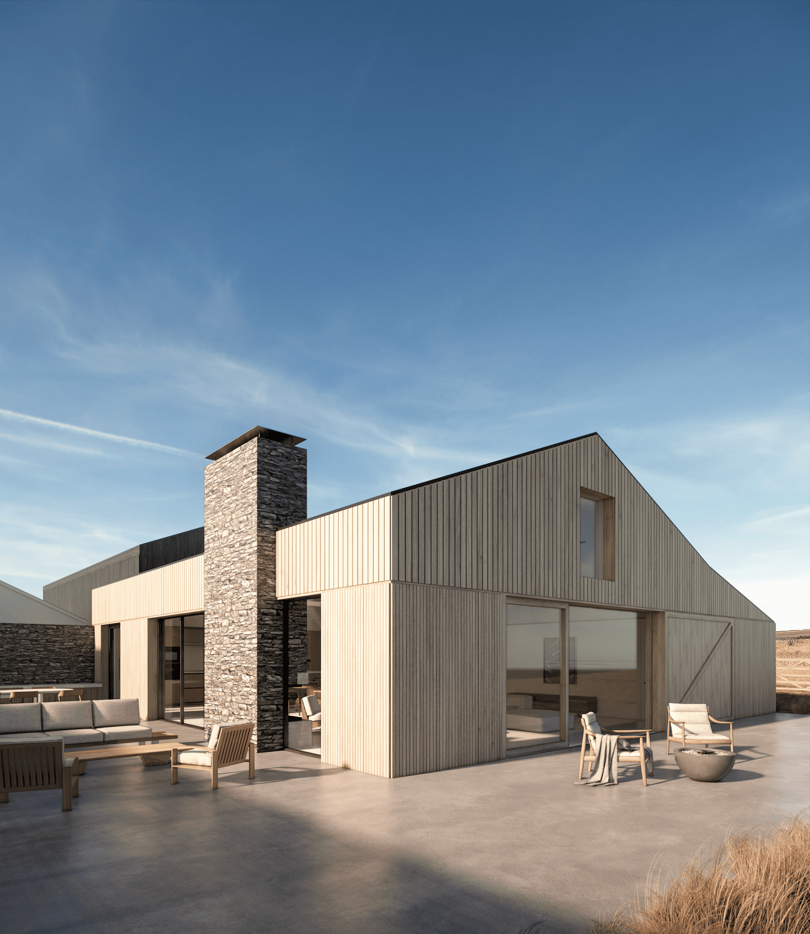The existing structure is compromised of two distinct volumes. These have been treated different externally to help visually separate and break down the volume to prevent it appearing too large, and internally, the two volumes occupy different uses. One volume sleeping accommodation, the other living. This visual and physical separation creates a threshold between public (social) and private (more intimate) spaces internally.
